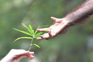 Sometimes, I catch a scene that makes me marvel at our natural urge to communicate across boundaries. When we don’t share language, we make simple gestures of friendship. This one is between a human and a young orangutan. It reminds me of the idea of extending an olive branch to show goodwill. Wasn’t it Solomon who told us that to have friends, we must first show ourselves to be friendly Pro 18:24 ? When you don’t have an olive branch, you can simply use whatever is available.