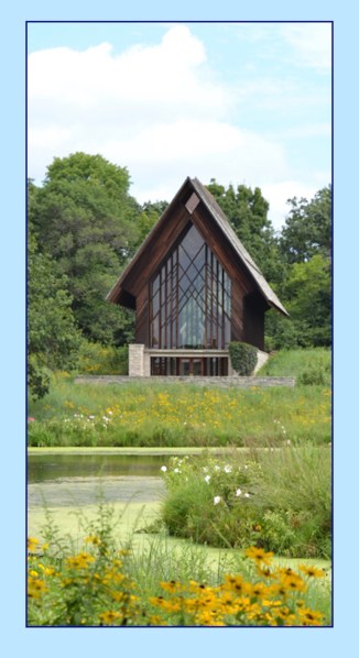 Inside of Powell Gardens, you can find this small wedding chapel. Its simple structure uses natural building materials and integrates into the landscape.